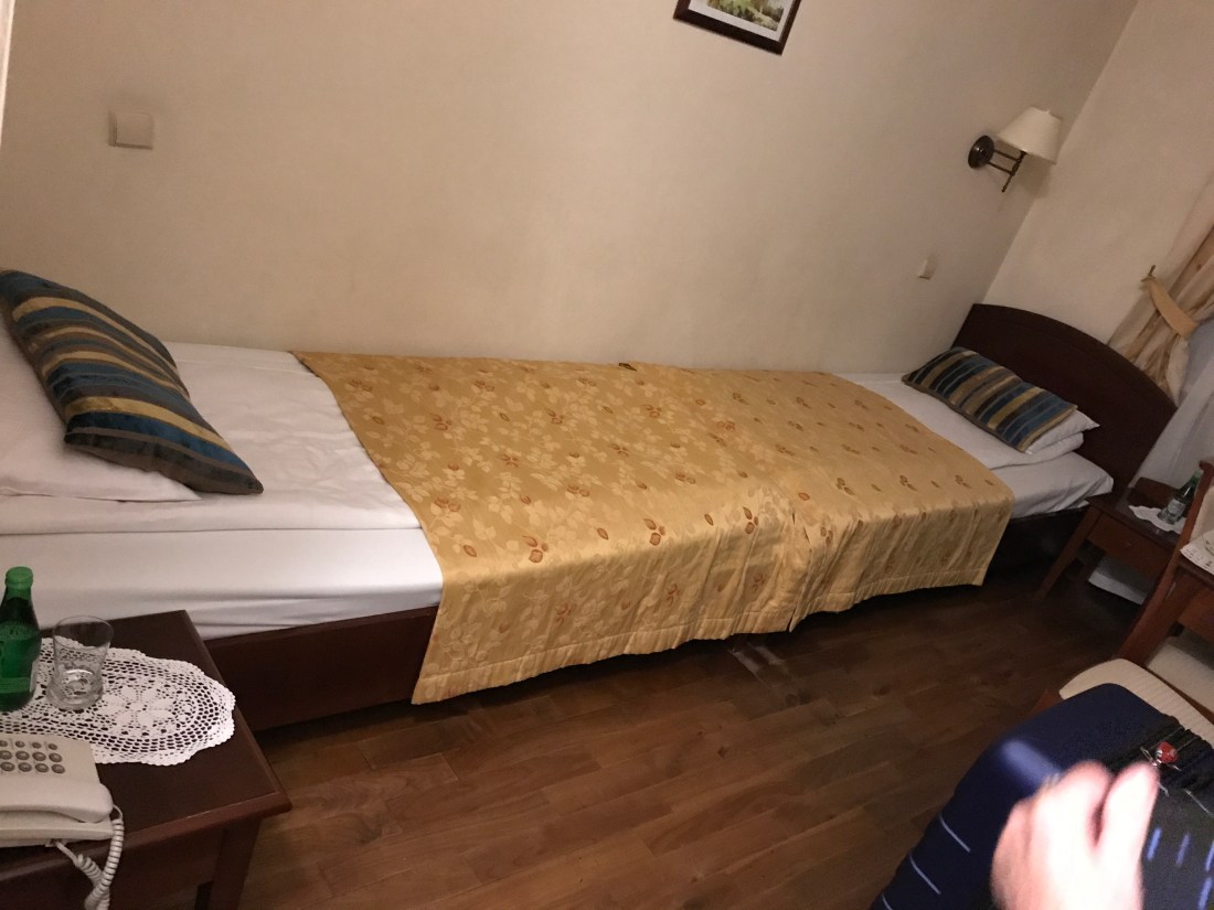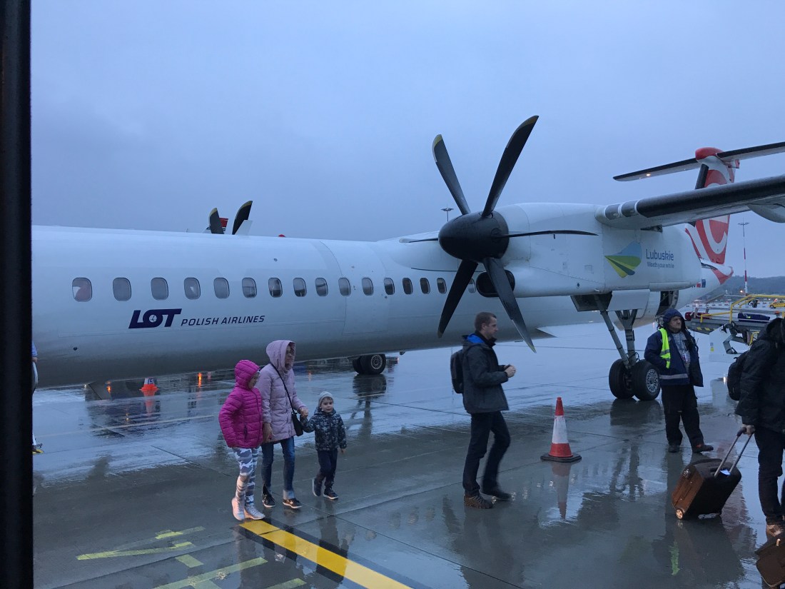 5/5. YES, this is Krakow. Propeller airplane!!!!!! REALLY!!!!!! Smooth flight! Called Uber to take us to the hotel. Well……he left us 3 blocks away because in the area where the hotel is, there is no Uber allowed!!!! Not raining, just wet, so we drag our luggage (cubbler stones) just ridiculous. Looked for the hotel, but the numbers are not in order….so…I walk up a corner of the street the hotel was, (15). And I see 22,24,26……so I turned back thinking that 15 was in the block before, but no!! It was across the street…..Opened the door and what do we find? Stairs to the 2nd floor where the reception was……we left the luggage downstairs, Check in, and surprise again, our room was on the 3rd floor!!! Nothing else available… got help from the receptionist (a skinny Poland girl) that took our luggage all the way up! And here we were!, tired of so much walking carrying luggage…..luckily we are so young we can take it!!!
