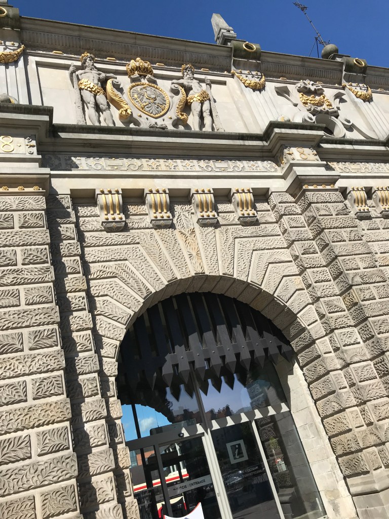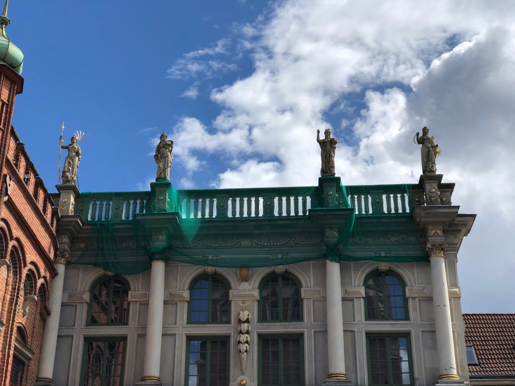 Ready to meet our “Free Walking Tour Guide Girl”, and with all the winter clothes back on, we walk 3 blocks up to the Golden Gate. No, not the one in San Francisco, but the historical landmark in Gdansk. Created in 1612. Both sides have figures symbolizing the qualities of the ideal citizen. From the West side they represent Peace, Freedom, Wealth and Fame. From the East side Agreement, Justice, Piety and Prudence. And there is a n inscription that reads: “In agreement small republics grow, because of disagreement great republics falls”.
