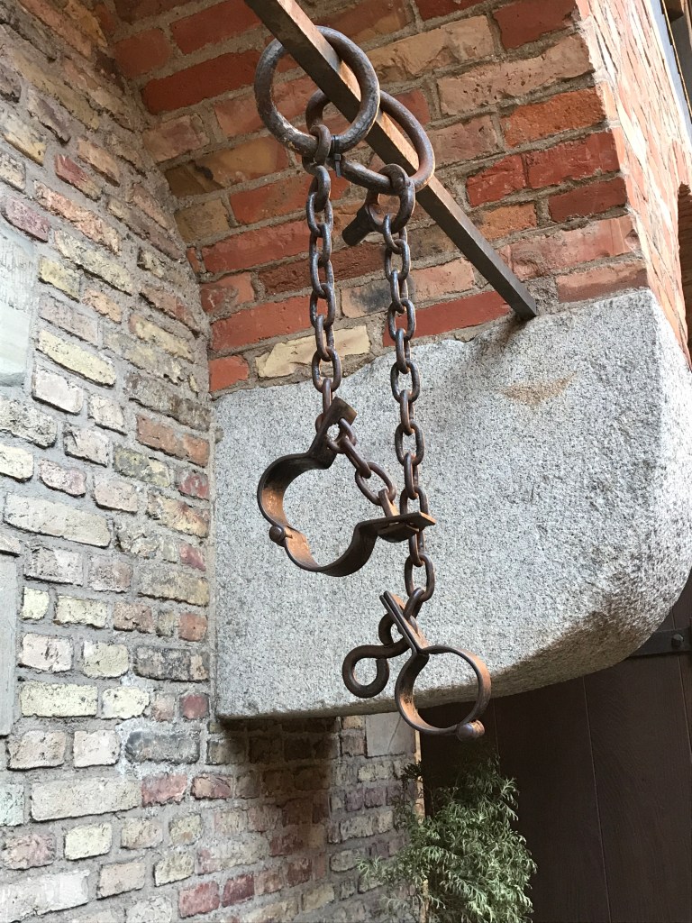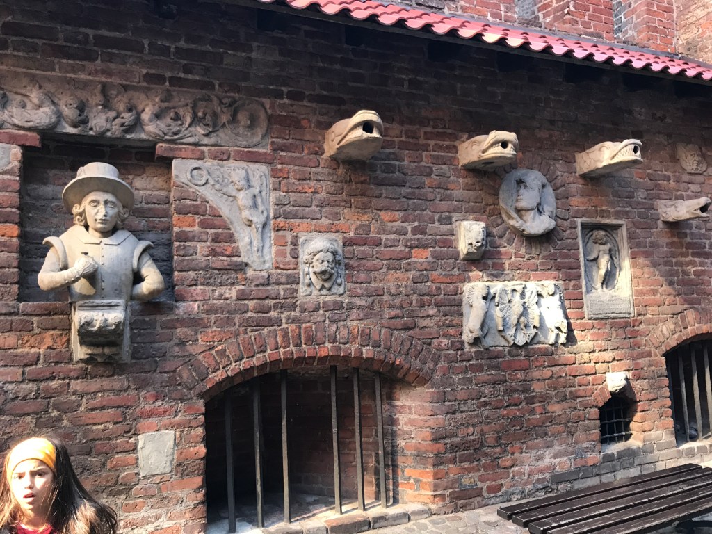 We met our guide by the Golden Gate and the Amber Museum. Amber, in the time of royal Gdansk, was acclaimed a major centre of amber crafts, but the Amber Museum was once home to the Prison Tower and Torture Chamber, and we could see inside some of the “ornaments” used for torture.
