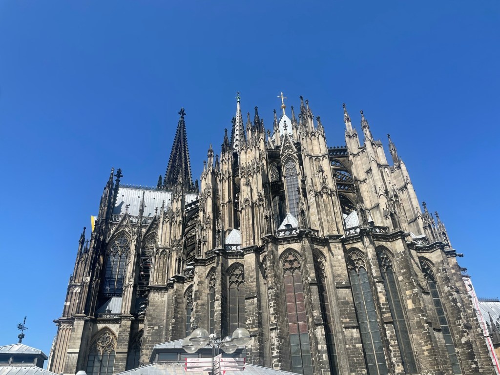 We walked towards the Cathedral, so impressive. The building started in the 13th Century and ended 620 years later, the work on the cathedral was interrupted due to the Reformation and the Thirty Years’ War and was not resumed until the 19th century, when Prussia annexed the Rhineland and the city of Cologne became part of the Prussian state. The break in construction lasted more than 300 years.