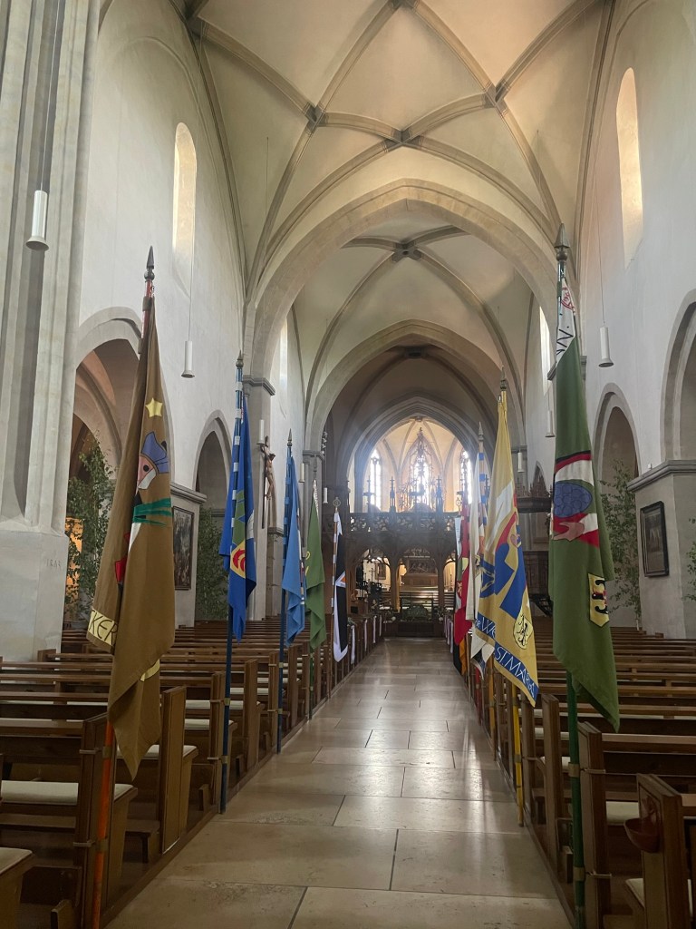 We made our way uphill to visit the beautiful St. Stephen’s Cathedral, perched above the town. The walk was steep but worth it—the views from the top were stunning, with sweeping sights over the Rhine and into France on the other side. The church itself was peaceful and full of history, with stained glass windows and old stone walls that carried a quiet sense of reverence.