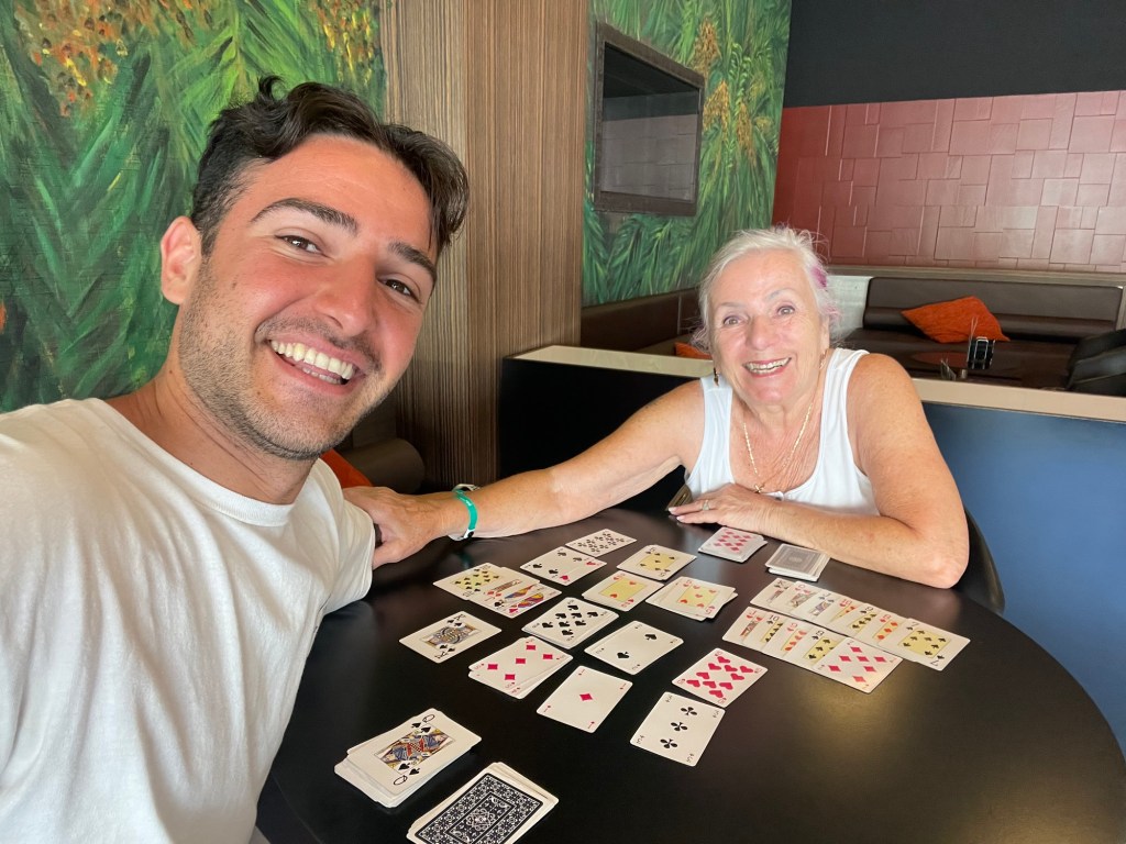 That turned into a few rounds of “Escoba del 15”—or “Broom of 15”—a classic Spanish card game where you have to add and strategize to collect cards that sum to fifteen. This time, I won! 🎉