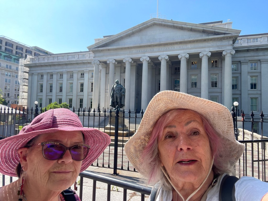 Last picture is the TREASURY DEPARTMENT. An image of this building is in the back of the ten dollar bill. In the front the statue of Albert Gallatin who founded the New York University and was a US Secretary of the Treasury.